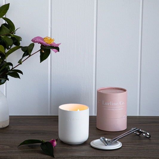 Whether you are styling your master ensuite or the powder room in the holiday house, it's the small design accents that really elevate your bathroom. Lurline Co. 100% vegan soy wax candles and plush oversized towels are great for your bathroom needs.