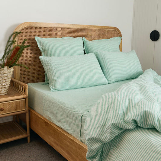 Lurline Co. fitted sheet collection is the perfect choice for a European style bed. Featuring our tag to identify the bottom corner and generous sizing to fit a deep mattress in our famous European flax linen.