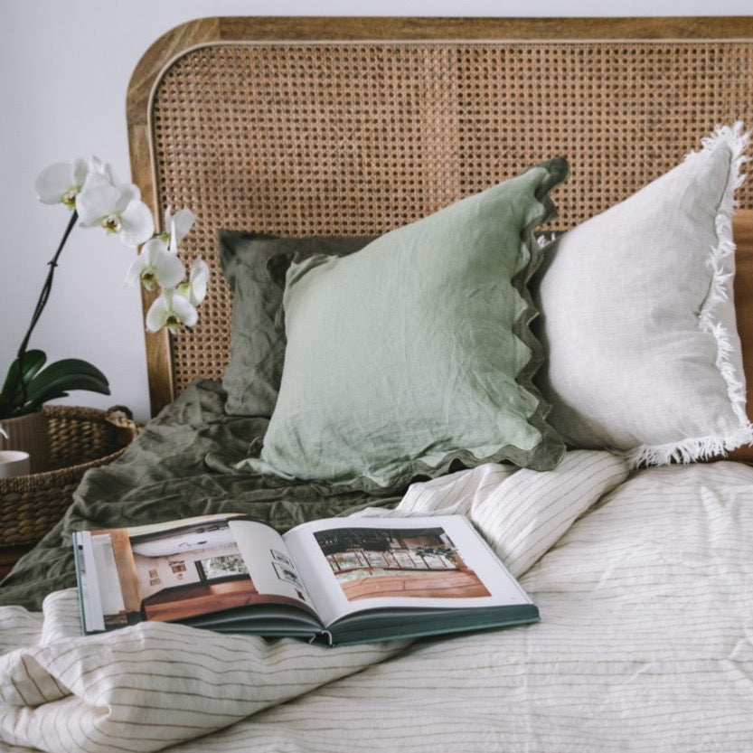 Our linen bedding, dining, cushions and robes are made with the utmost attention and care, ensuring the highest quality to even the tiniest detail. Our linen is 160-190 GSM which is thick and luxurious.