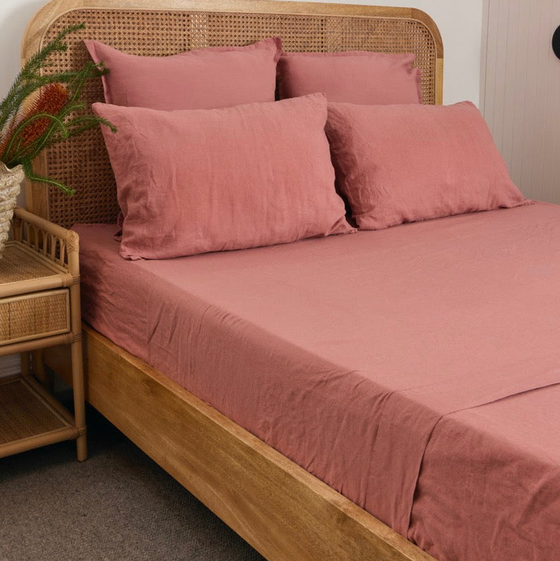 Dusty Pink French Flax Linen Sheet Set