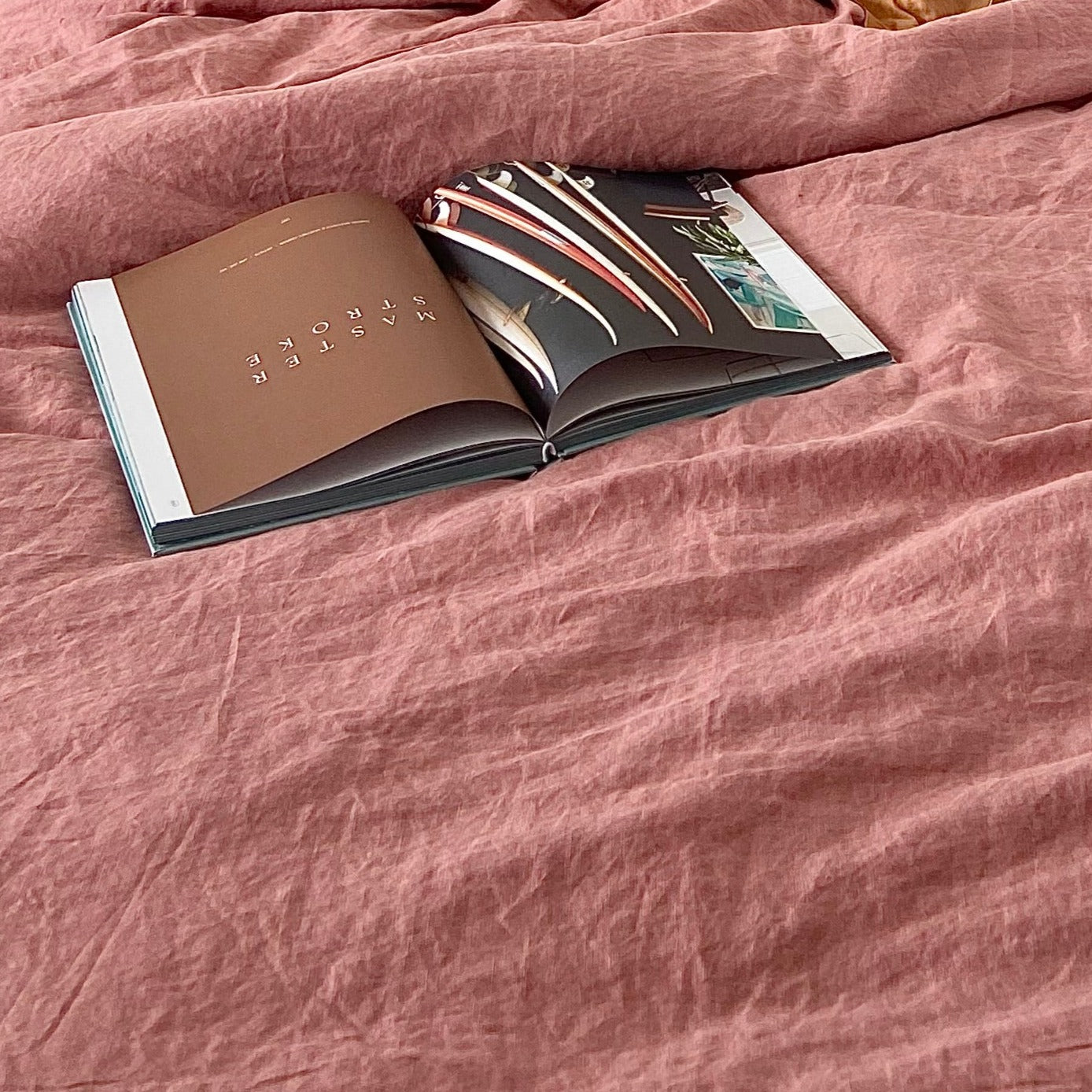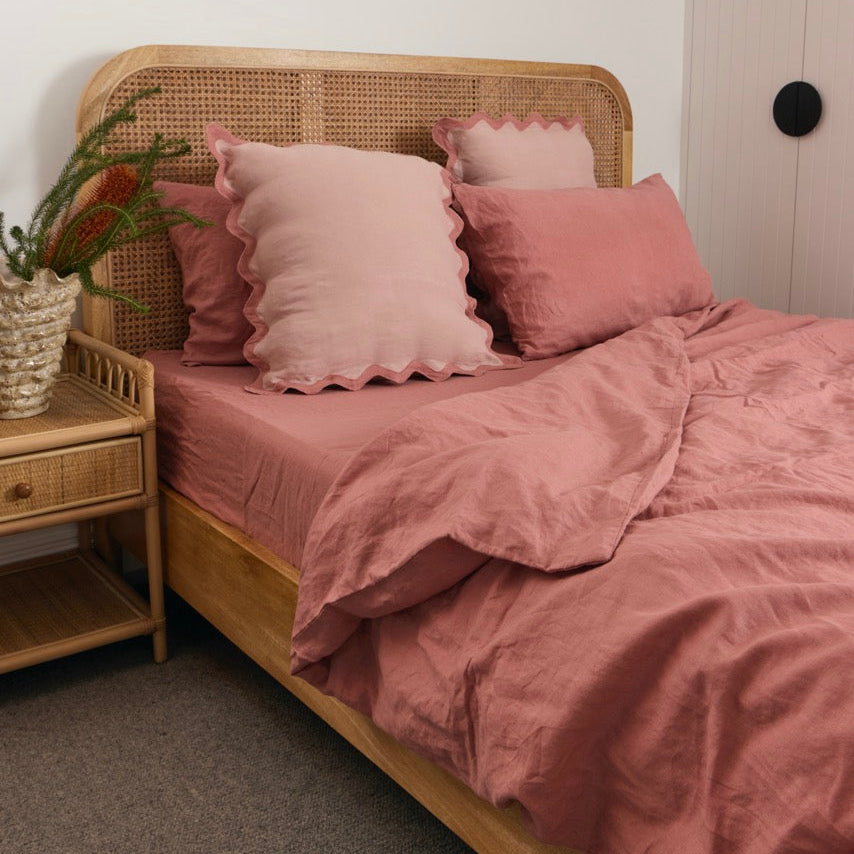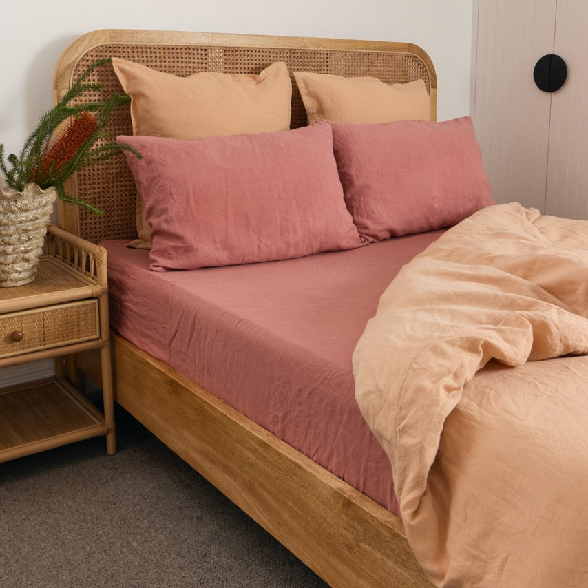 100% French flax linen sheet set in dusty pink.