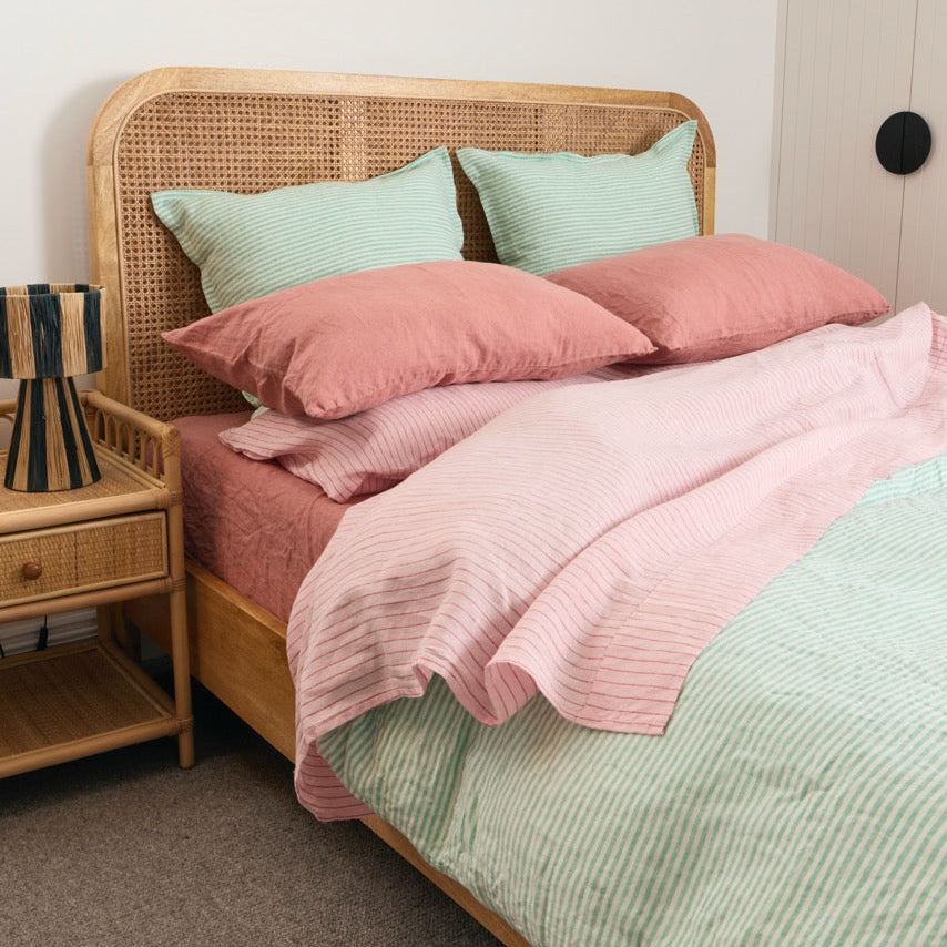The Capri French Flax Linen Duvet Cover, crafted from premium quality linen to provide an exceptional level of softness and comfort. Its signature green and white stripe replicates an Italian villa by the seaside, while its long-lasting quality ensures a durable and beautiful piece to last in your home for years to come.