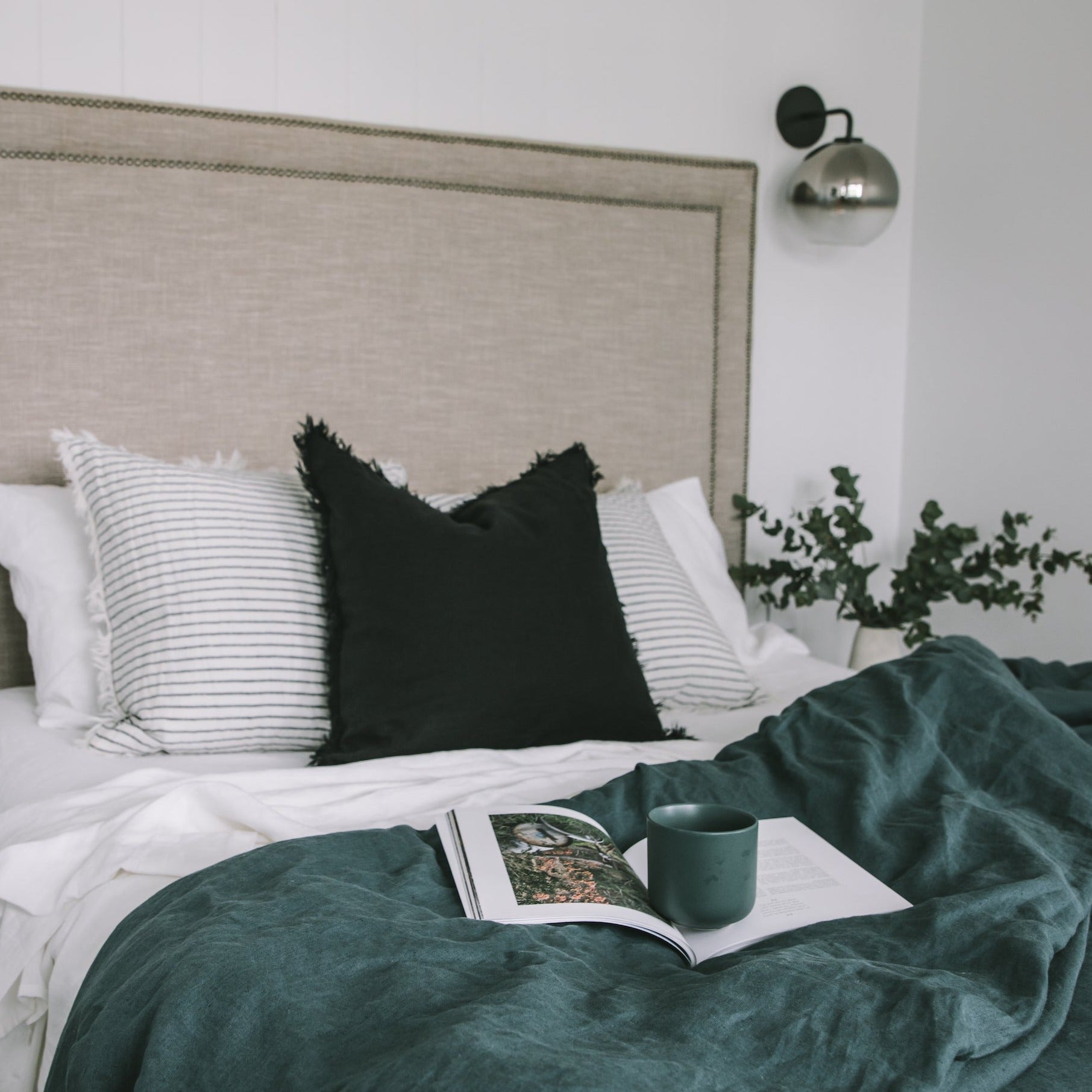 The black and white stripes are a classic and timeless design that will work best when paired with a feature cushion. We recommend a bold colour to complement the subtleness of the stripes. Our Olive Wave cushion is a classic pairing, as is our Burnt Orange Wave cushion as seen in the styling photos. Our Blush Wave cushion goes well for a more relaxed look, or opt for a black cushion for a dramatic, but neutral statement.
