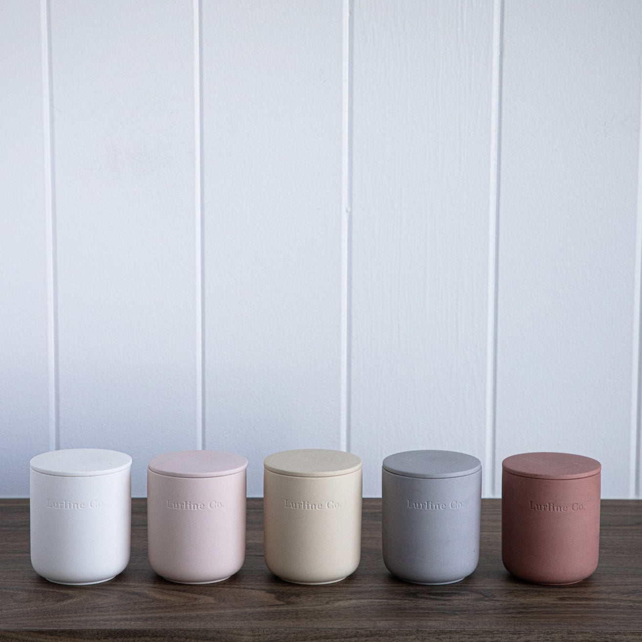 Lurline Co Coconut and Lime Candle comes in a white ceramic vessel.