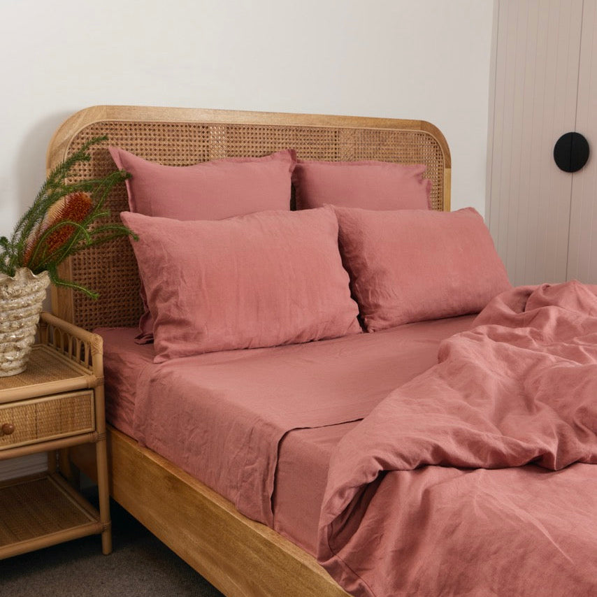 Crafted from 100% flax linen, the dusty pink cushion cover is set to mix and match with our dusty pink sheet set and duvet collection.