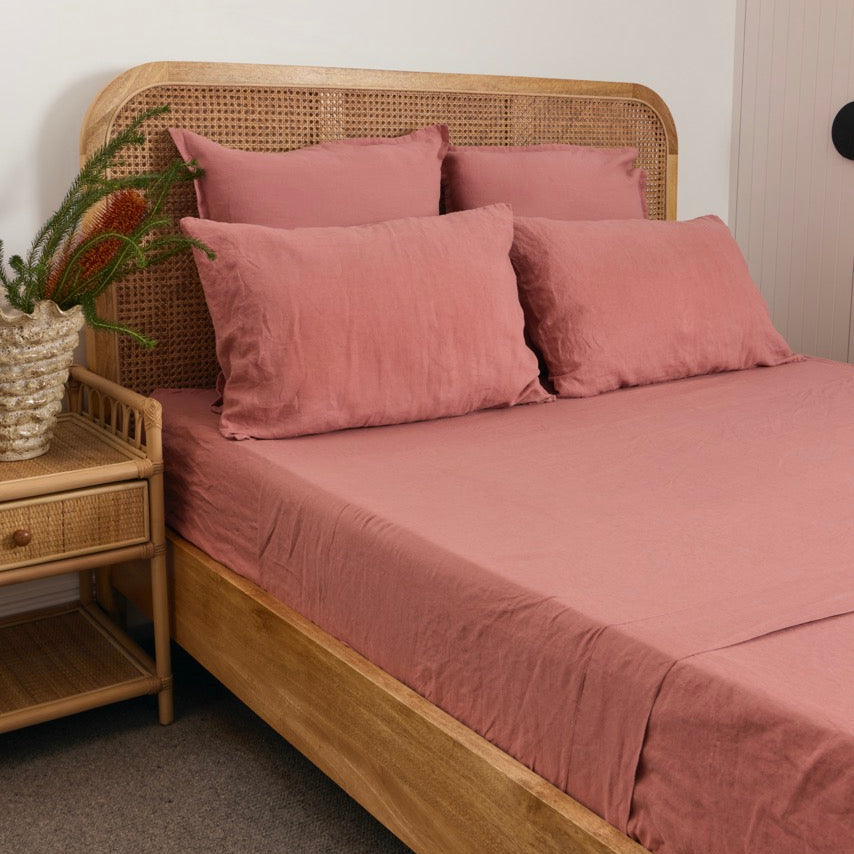Our Dusty Pink French Flax Linen Fitted Sheet is expertly crafted with high quality flax linen. Our linen is breathable, temperature-regulating, and ultra-durable for exceptional comfort night after night. Linen made from French flax fibers is softer, more absorbent, and more flexible than other fibers, providing you with a sleeping experience like no other.