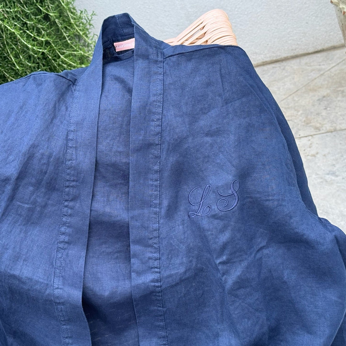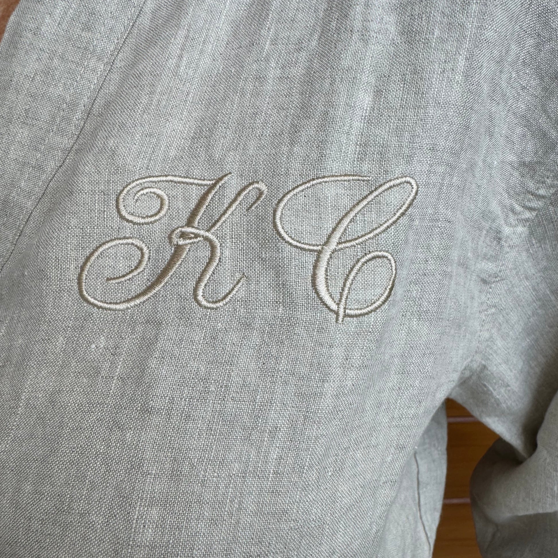 Add embroidery to your Lurline Co. linen robe with up to three letters.