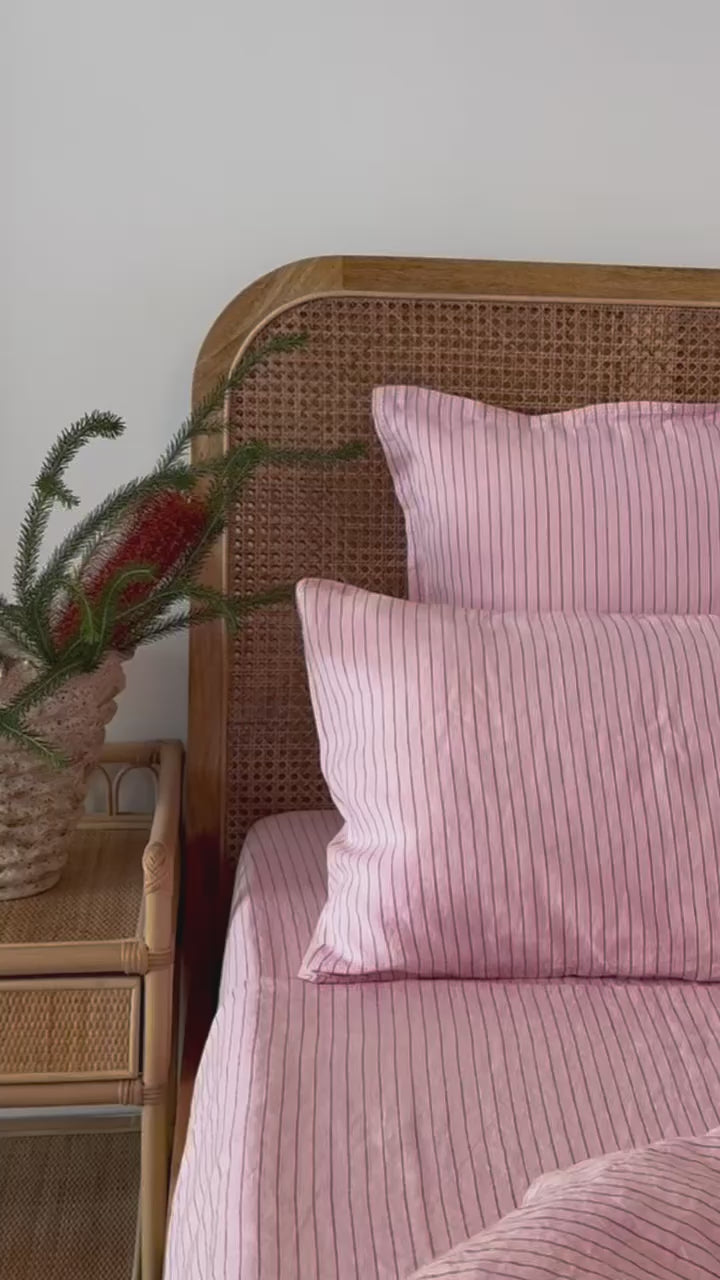 The Positano French Flax Linen Duvet Cover, crafted from premium quality linen to provide an exceptional level of softness and comfort. The iconic pink and red stripe will give you joy every time you look at your bed, while its long-lasting quality ensures a durable and beautiful piece to last in your home for years to come.