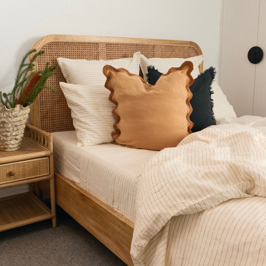 Crafted from 100% flax linen, the sandstone European cushion cover is set to mix and match with our sandstone sheet set and duvet collection.
