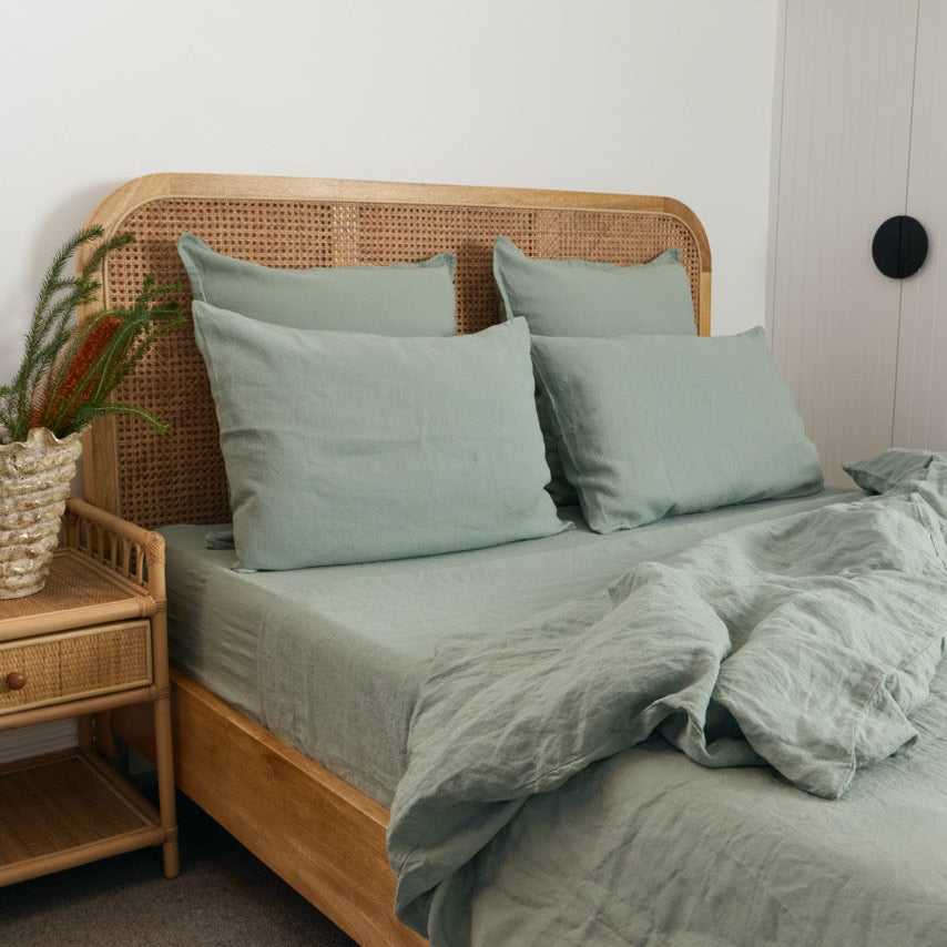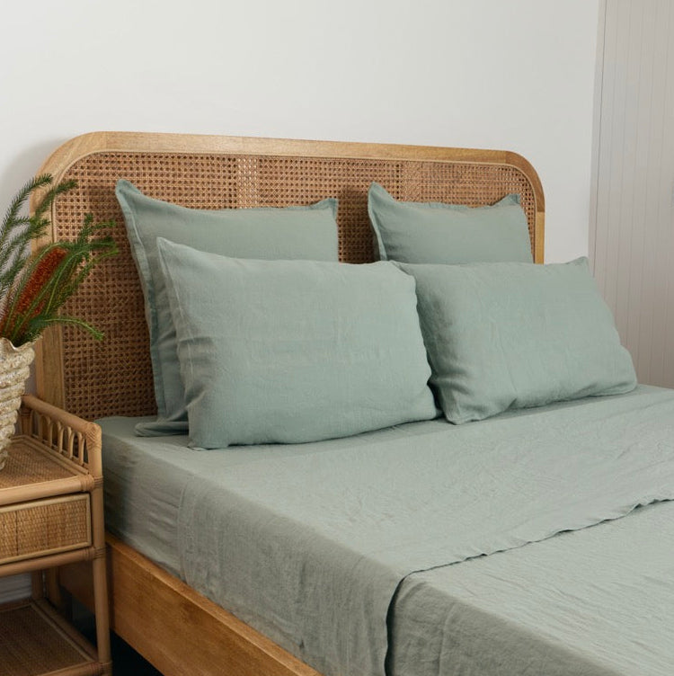 Crafted from 100% flax linen, the sea glass European cushion cover is set to mix and match with our sea glass sheet set and duvet collection.