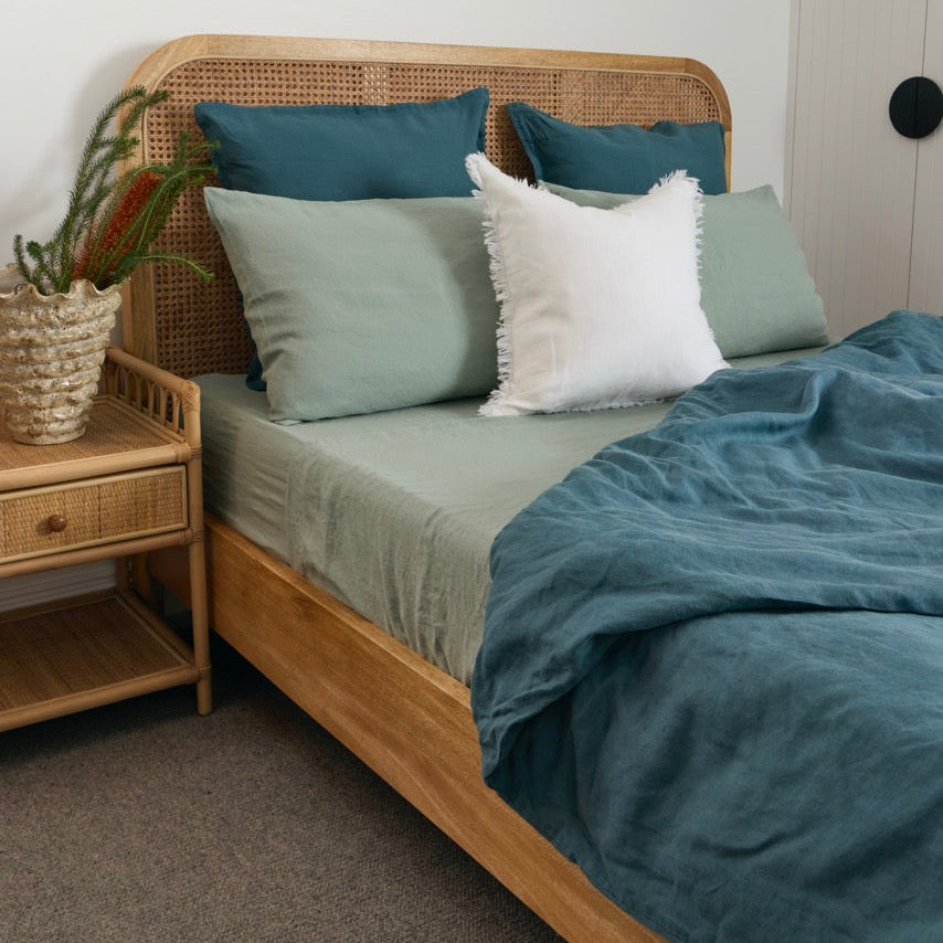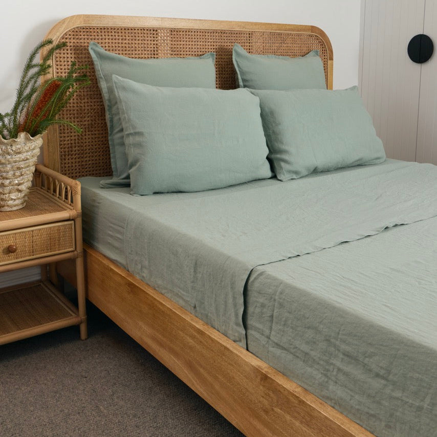 Sea Glass French Flax Linen Fitted Sheet