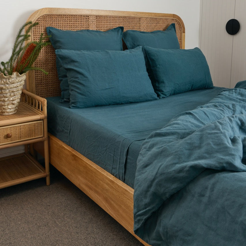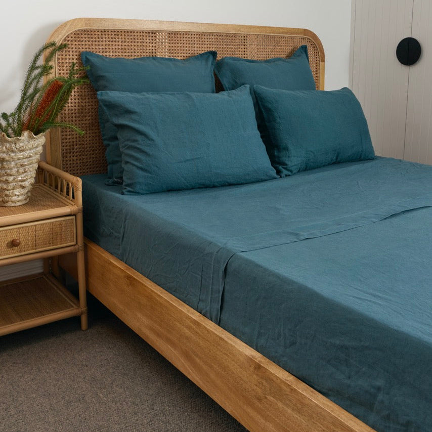 Teal Blue French Flax Linen Top Sheet