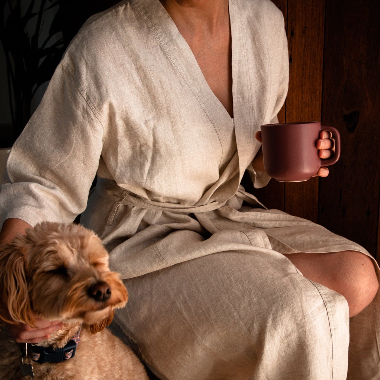 The Lurline Co. linen robe in natural linen is the ultimate in luxury and comfort. Perfect for lazy Sundays at home.