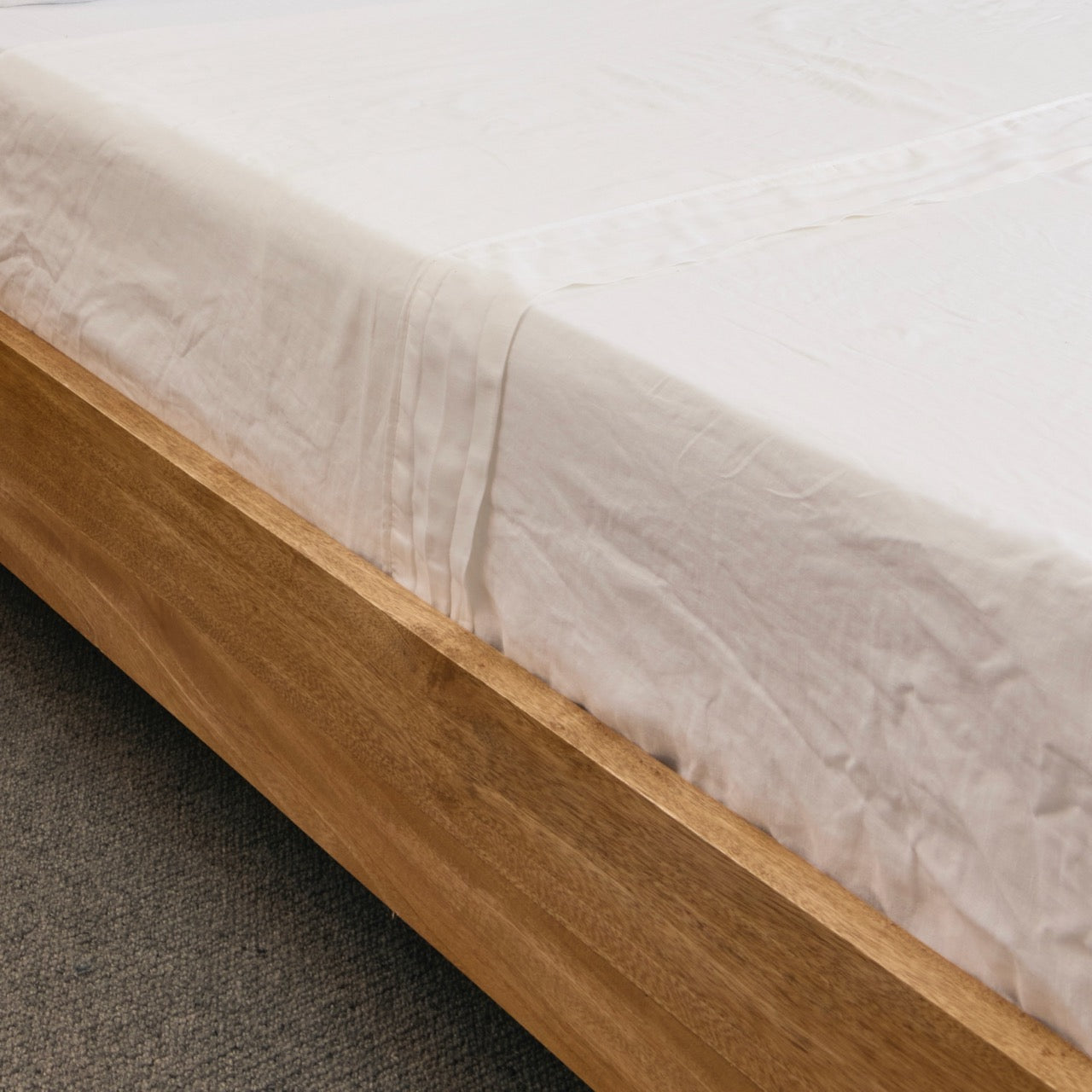 Tag to identify bottom left corner and generous fitted sheet sizing suitable for a deep mattress.