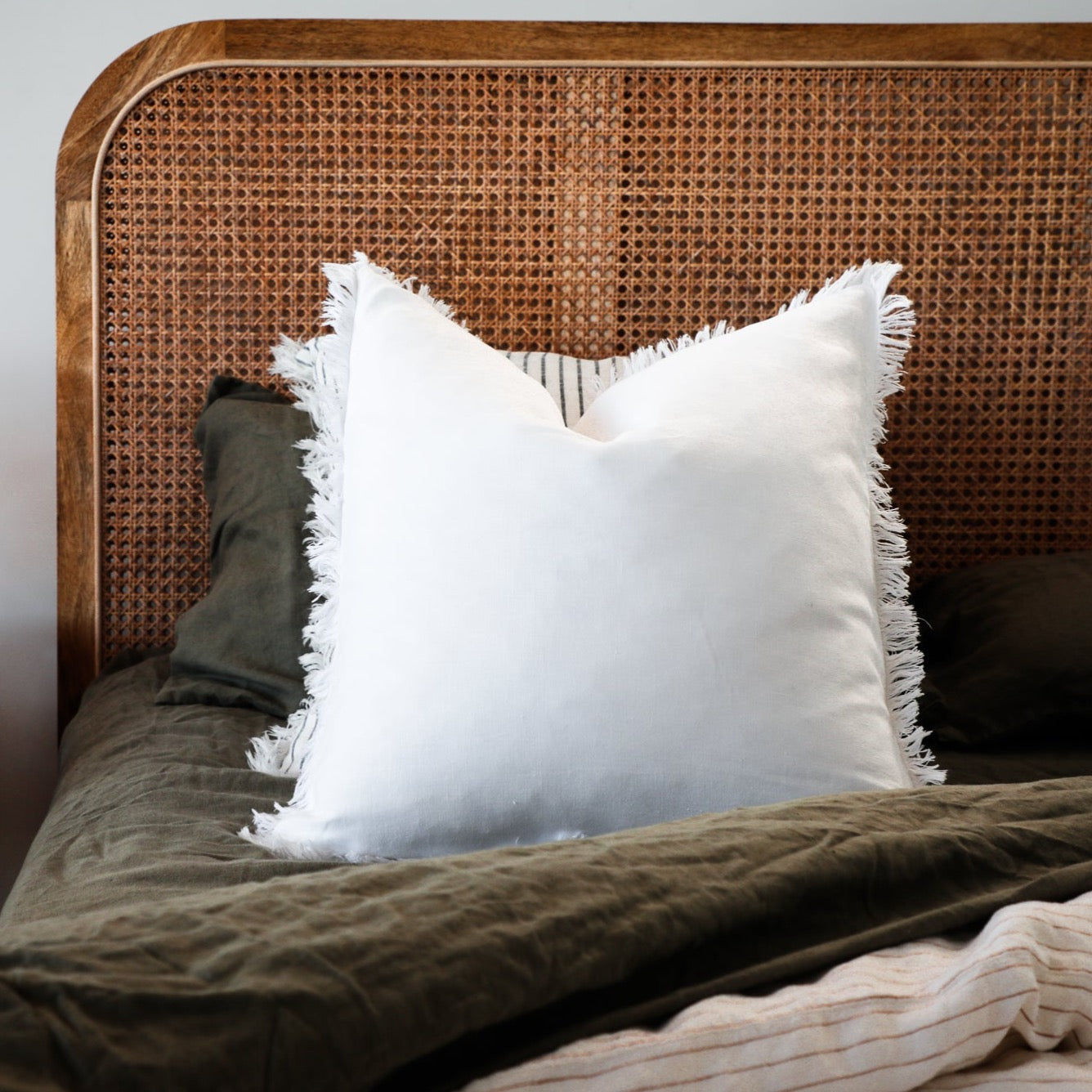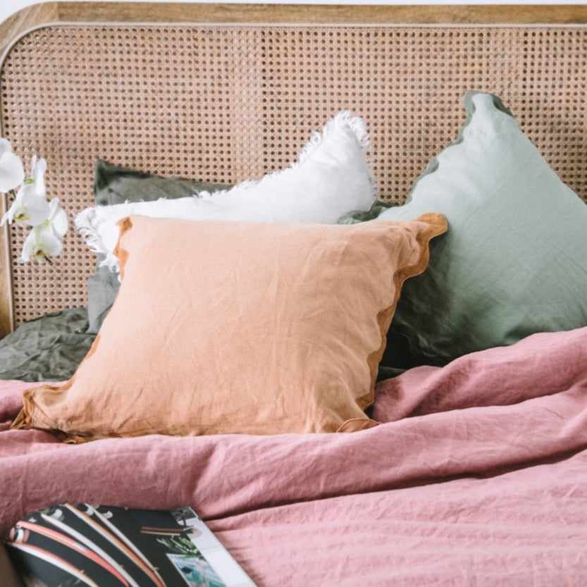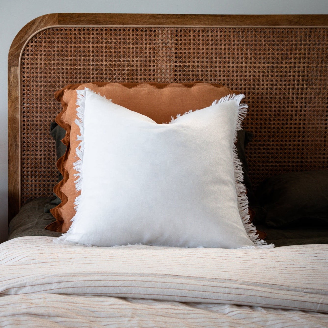 A white cushion is a staple for every home. It is versatile and complimentary to all of the Lurline Co. cushion range. You can pair it with our wave cushions, that come in a beautiful collection including 100% flax linen with orange scallop edging, olive green scallop edging, mauve scallop edging and blush pink scallop edging.